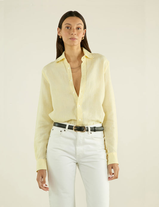 Boyfriend Linen Button Down Shirt in Lemon Yellow