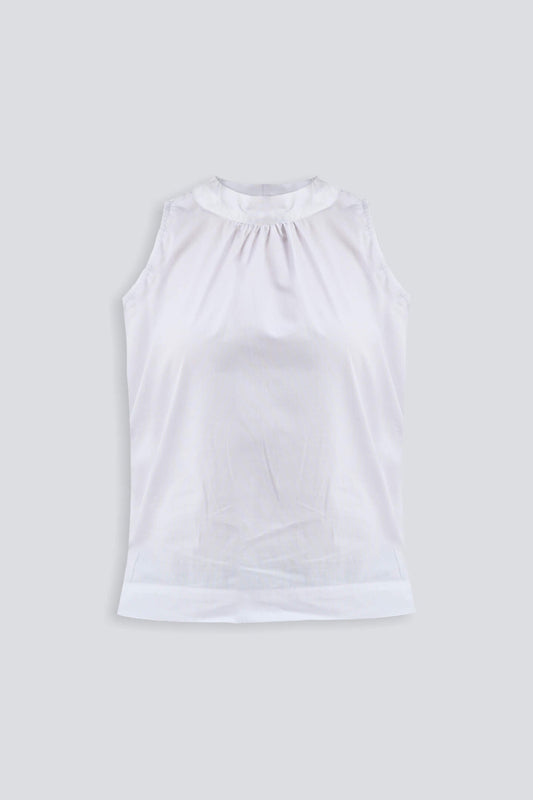 High Neck Top with Gathers in White