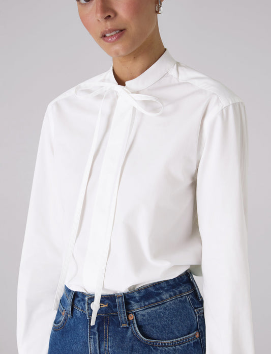 Boyfriend Bowtie Button Down Shirt in White