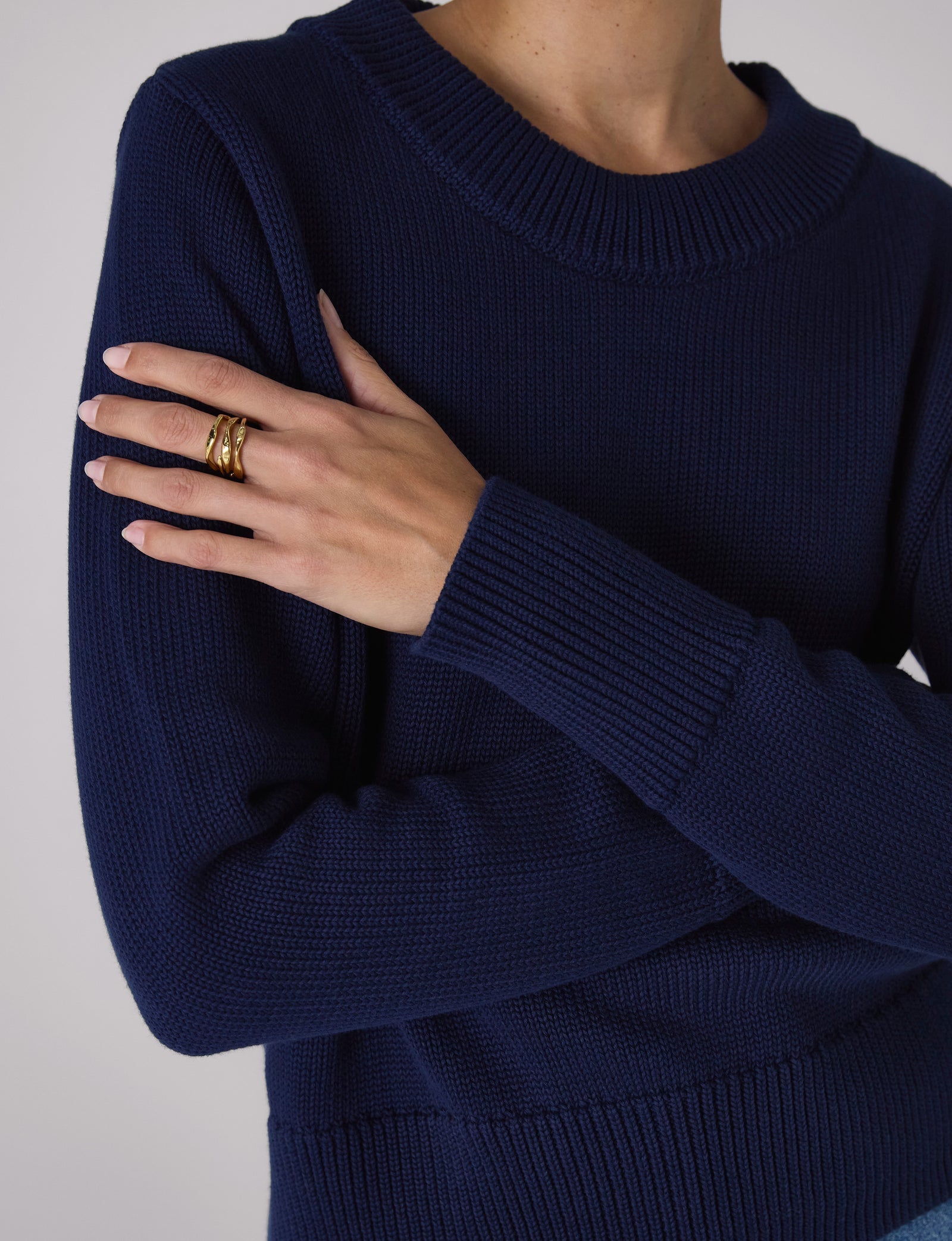 - Crew neck with chunky rib